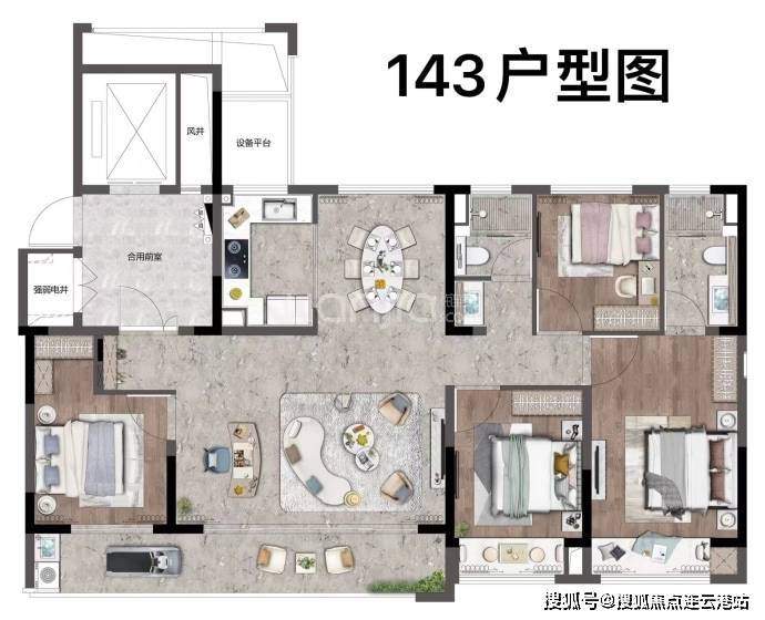 143㎡四居:单价约19000-27000元/㎡,总价255-290万/套,大面宽阳台