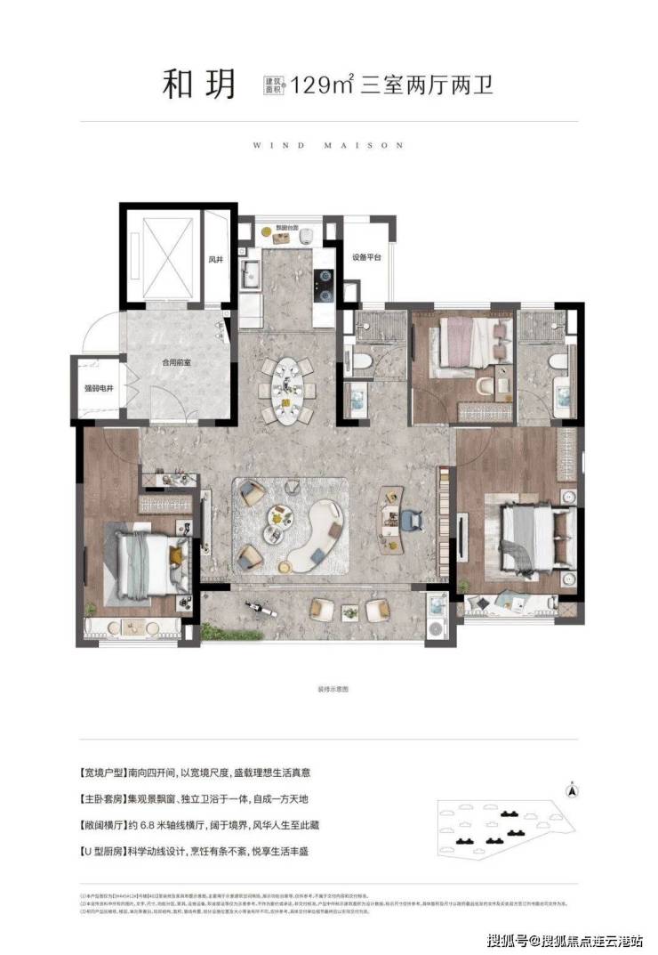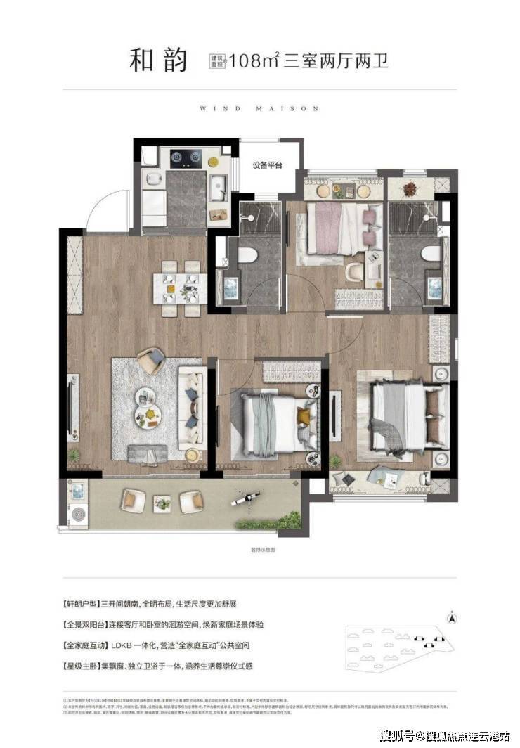 108㎡三居:单价约18000-21000元/㎡,总价190-210万/套,三开间朝南设计