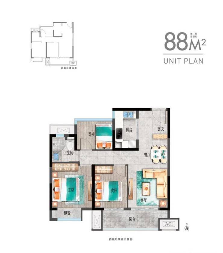 85㎡做三室一卫(低总价刚需)