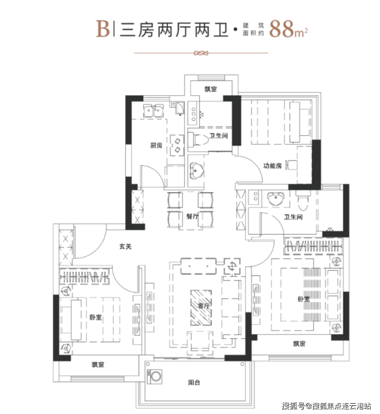 建筑面积:88平米(三房两厅两卫)
