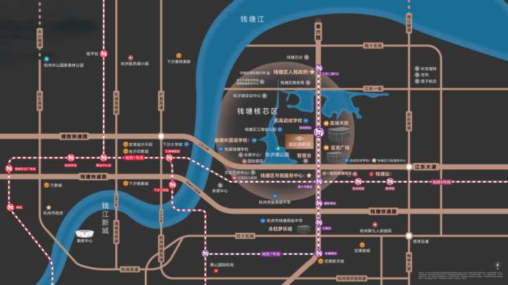 紧邻江东大道,5分钟上钱塘快速路,15分钟直达武林广场,25分钟抵达杭州西站;