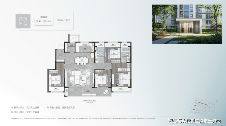 洋房143平户型:三室两厅两卫,总价270万起