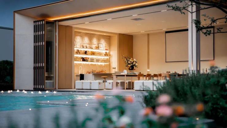 设计美学:采用铝板+石材基座立面,超大窗墙比设计,融入苏式园林元素