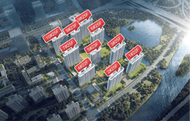 规划10栋22-25F高层,其中2栋22F高层、2栋23+1F高层、6栋25F高层。