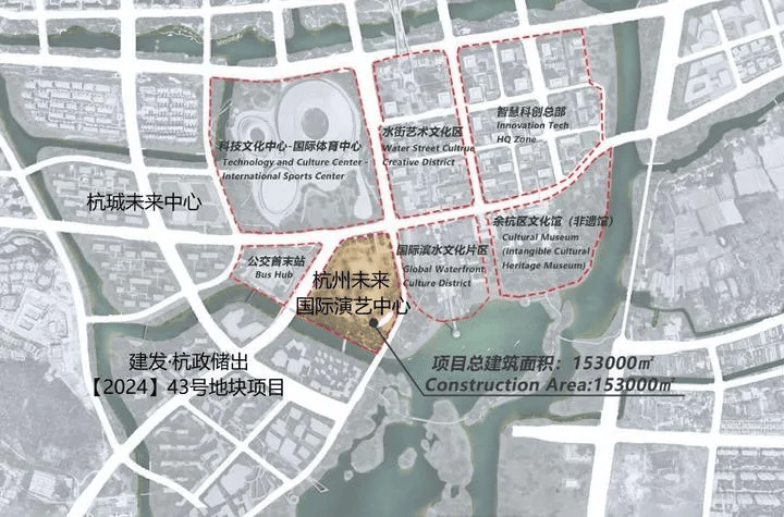 项目位于杭州“第三中心”中轴线南端,与在建的国际体育中心、未来演艺中心、银泰中心共同构成城市新天际线。