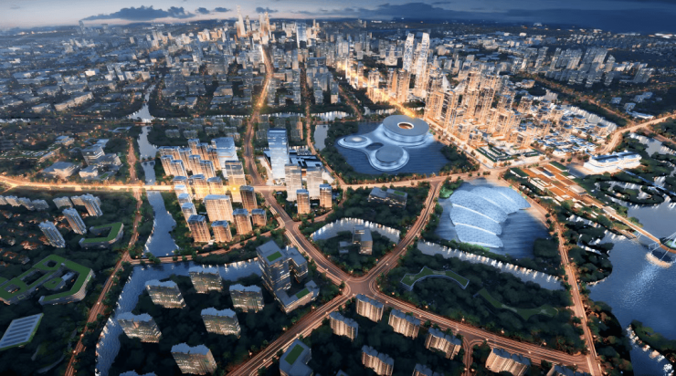 自带约19万平方米的万象城级购物中心,由挪威国宝建筑事务所snohetta操刀设计,融合科技与自然美学,预计2027年全面开业。