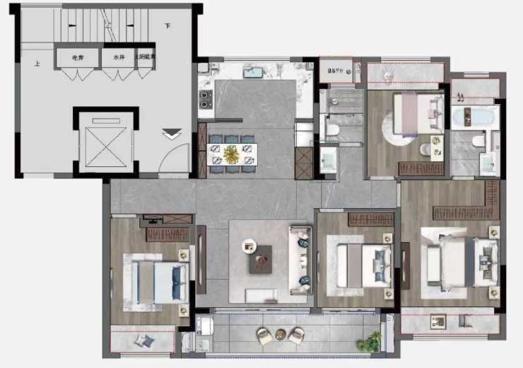 【建面124㎡4居】420.0-440.0万-分布于3号楼 1 ,2梯2户,层高3.00米,总楼层17F