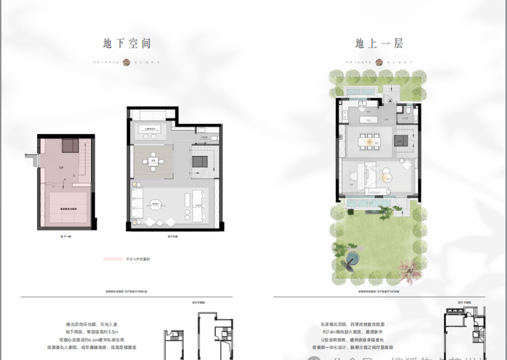 南北双庭院:一层整体抬高约3米,实现私密性强的南北双院设计,兼顾采光与景观视野