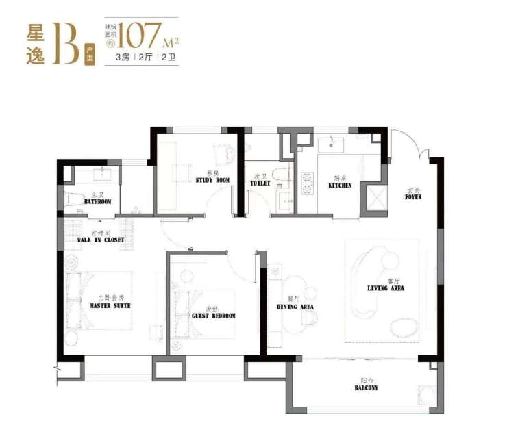 「星尚观澜世嘉」推出建面约103-129平方米的三房四房户型,得房率高达约79-81%,比市面上多数户型实用面积多出不少。主力户型包括建面约103-107平方米的3房2卫和123-129平方米的4房2卫,满足不同家庭结构的需求。
