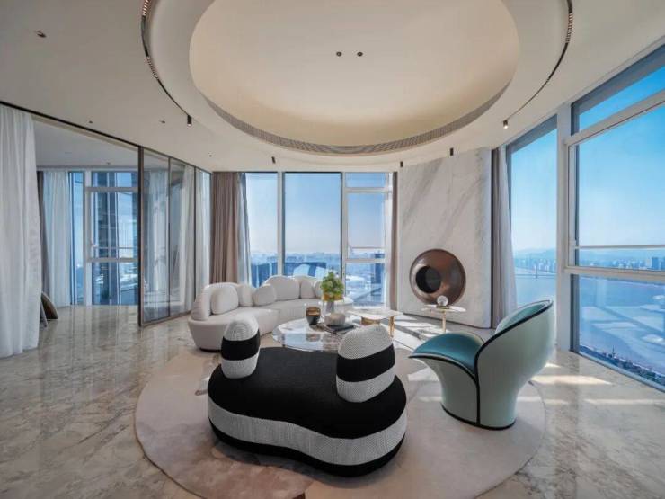 “全方位观景+全顶配奢装”的设计,让潮鸿既可以作为彰显成就的终极居所,也能成为商务会客的企业会所,满足塔尖客群的多元需求。