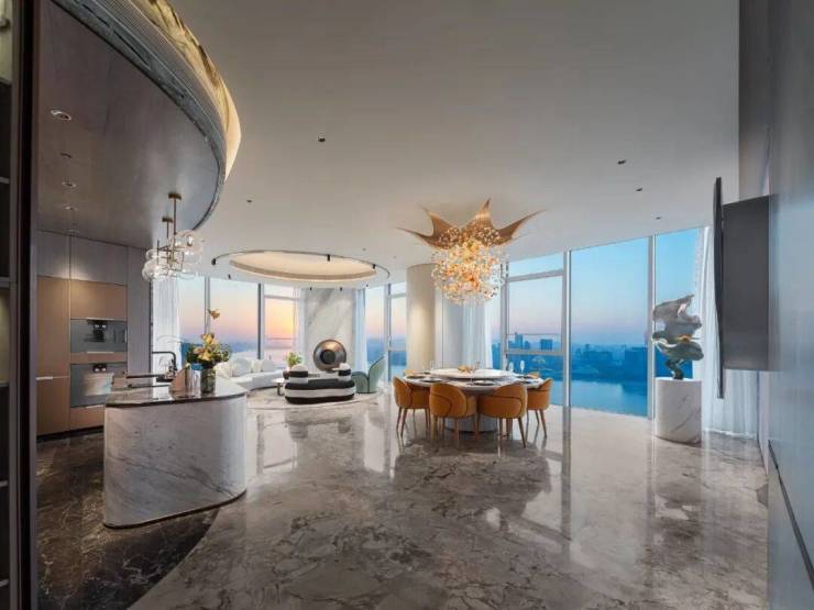 潮鸿的解答凌厉清晰:它不止提供一处居所,更致力于打造出兼具“景观霸权”与“艺术藏品”属性的城市孤品,并构筑绝对私密、自成一体的顶奢圈层王国。