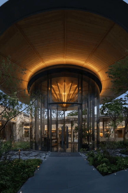 隐秀会所:下沉式设计,玻璃幕墙通透采光,270°观景视野,全龄社交空间全天候开放