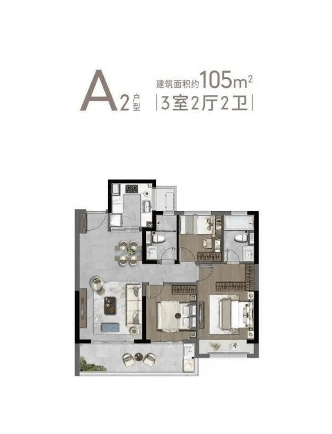 A2户型105㎡3-2-2