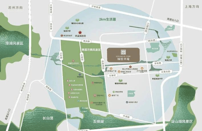 交通:距上海虹桥40公里,苏州园区20公里;周边12条公交线路(如299路),锦溪客运站500米