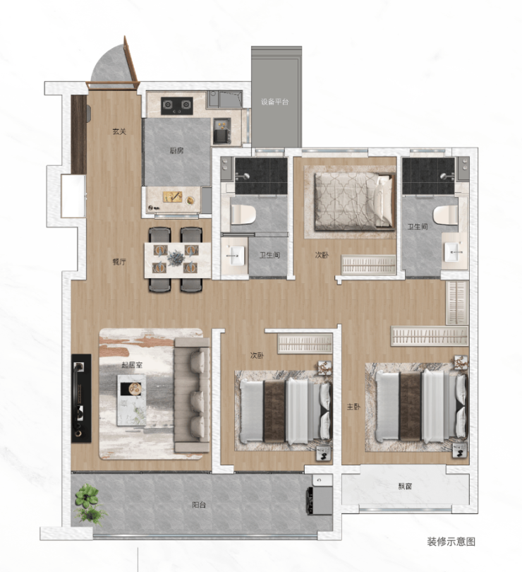 主卧豪华套房配备步入式衣帽间和独立卫浴,兼具尊崇与私密。双套房设计满足多代同堂或频繁接待亲友的需求,居住更显从容。