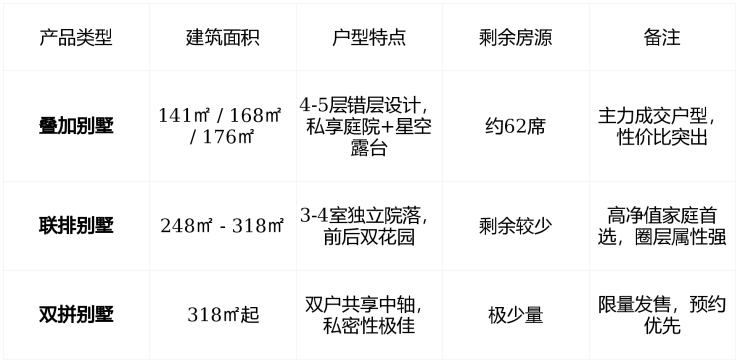 💡 价格区间 :根据市场反馈,叠加别墅单价约 1.8万–2.1万元/㎡ ,联排约 2.3万–2.6万元/㎡ ,总价区间约 280万–800万 ,具体以售楼处实时报价为准。