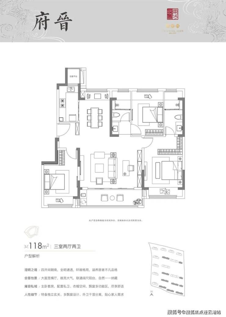 遵循“天圆地方”的造宅理念,和萃澜庭户型设计暗藏东方哲学智慧。建筑面积约140㎡户型南向奢适面宽,恰合“向阳而生”的居住智慧;南北通透设计,复刻了拙政园“与谁同坐轩”的通风妙法。