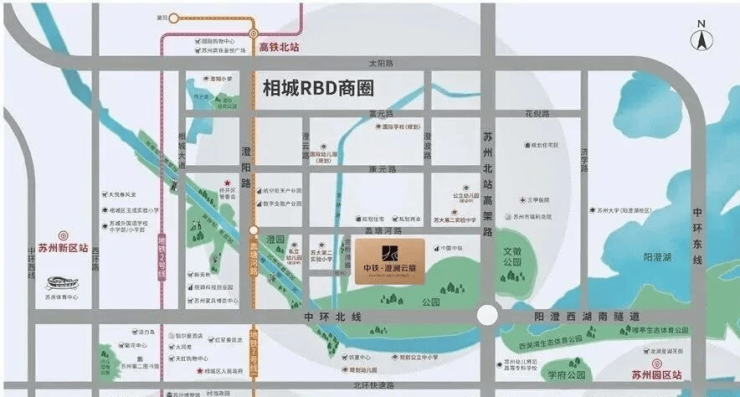 高铁枢纽:距苏州北站约5公里(未来扩容为13台30线"五铁交汇"枢纽)