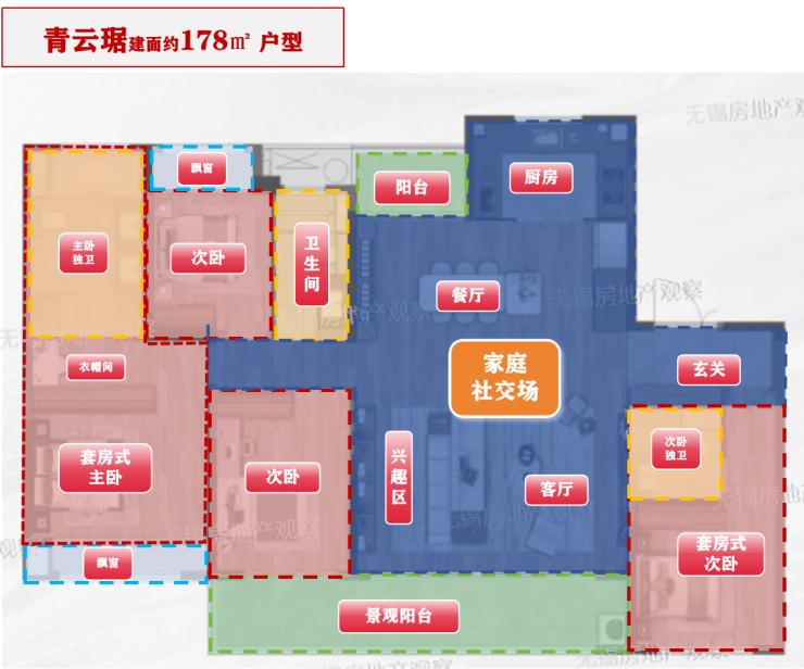 178㎡ 15,000元/㎡ 267万元 257万–261万 4室2厅3卫,双阳台+独立书房,终极改善