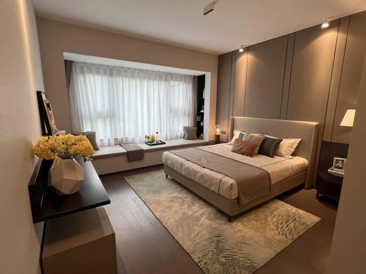 建面约123㎡户型,有约10.6米三开间格局、约6.9米双面宽景阳台,主卧套房匹配独立卫浴。