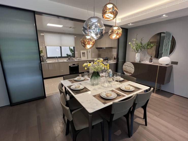 阔绰的四房空间格局,可把南向卧室打造为老人房,北卧书房可改造成儿童活动空间,开放式的客餐连厅设计,客餐连厅可容纳3-8人。