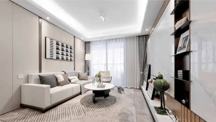 客厅与餐厅等宽,开间近3.7米,公共活动区超40㎡