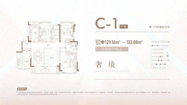 主力户型:87㎡三房、106㎡三房、129–133㎡四房,覆盖刚需改善家庭;