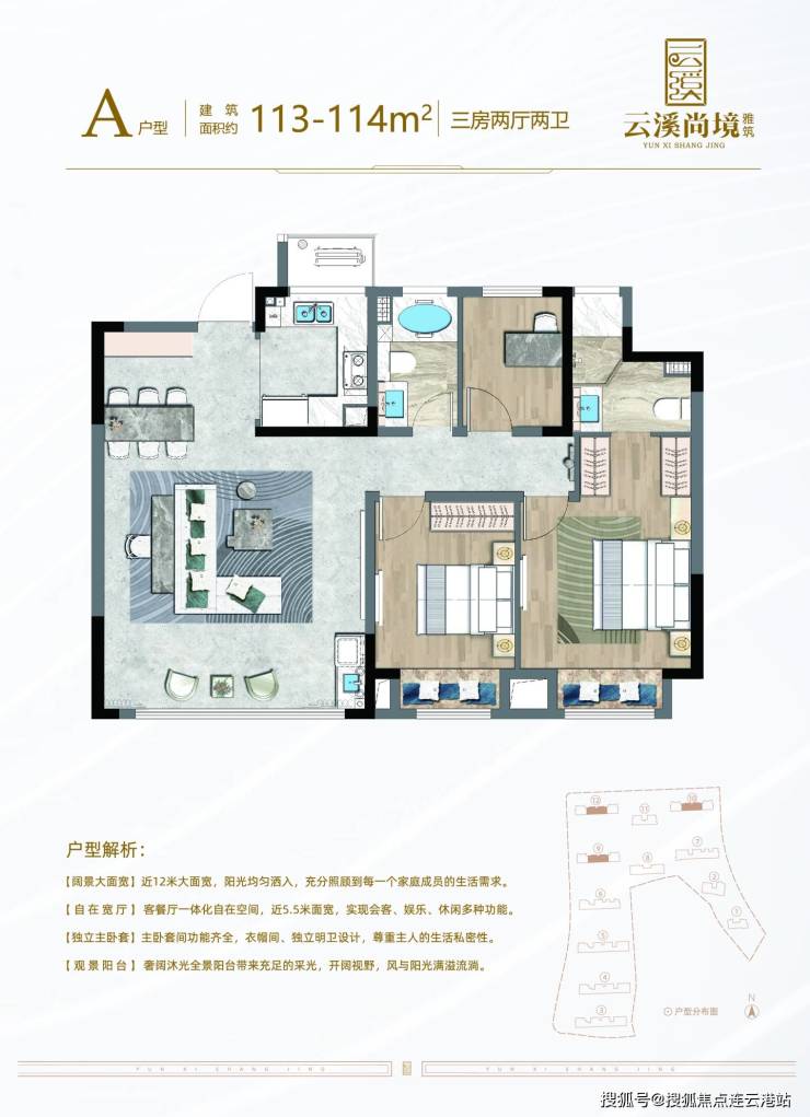 该户型总价在 150.0-170.0 万,分布于 12#、10#、9#,采用 1 梯 1 户设计,层高 3.15 米,总楼层 13F。建面 114㎡,套内面积 94㎡,户型朝向为南,空间布局合理,能满足三口之家的居住需求。