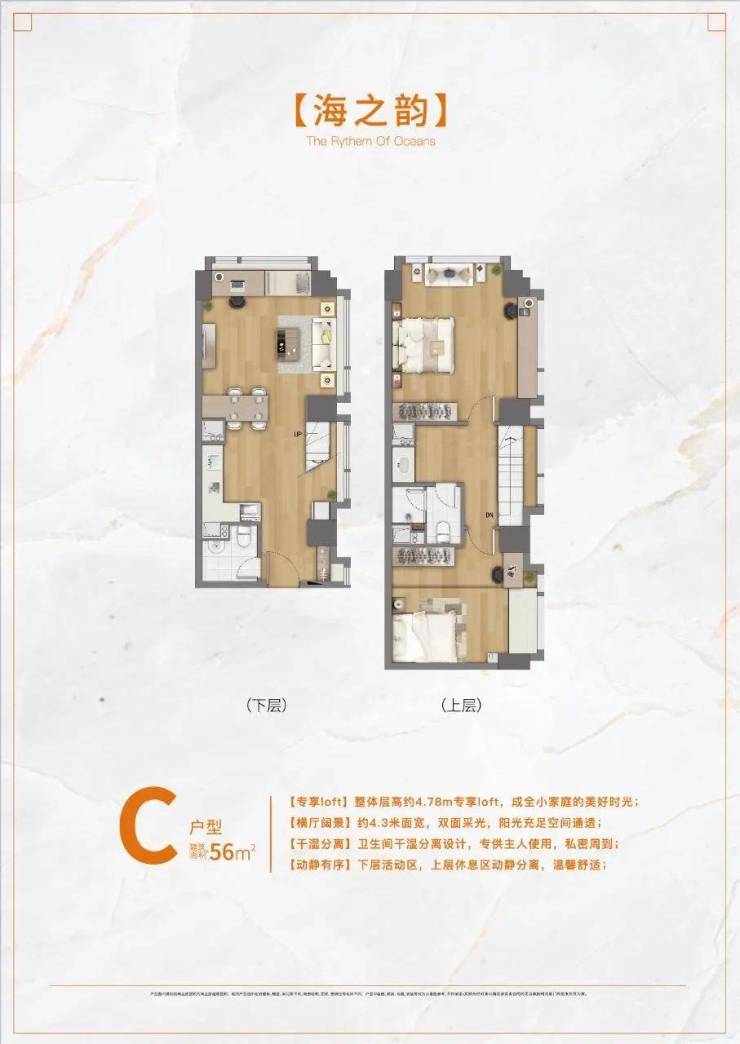 产品类型40年产权精装LOFT公寓,非传统住宅,主打“双钥匙设计”——买一层,得两层,实际使用面积达100–112㎡,层高4.78米,独立双门入户,可自住、办公、分租、投资四用。