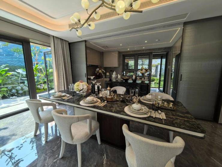 户型:建面约150-240㎡大平层,实际得房率约100%,户户标配15-35㎡空中庭院及270°环幕露台。
