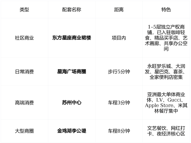 路网优势 :南环快速路、星海街、苏州大道西三线交汇,10分钟通达苏州中心、诚品书店、金鸡湖景区