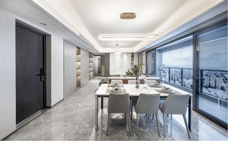 在小区中,有一处独具特色的设计——一环。所谓“一环”,指的是小区内部那条长度约 420 米的归家漫步环路。这条环路与 5 号地块有着相似之处,它巧妙地贯穿了整个项目的核心景观区域。业主们沿着这条环路漫步回家,不仅能享受悠闲惬意的时光,还能参与各种运动活动,真正实现了运动与漫步的完美结合。每一次踏上这条环路,就仿佛开启了一段健康生活的美好旅程,回家的过程也因此充满了活力与乐趣。而“一厅”同样引人注目。“一厅”指的是位于小区中央,用地面积约 3500 平方米的潮流会客厅。这里作为小区的核心景观所在,涵盖了丰富多样的场景。潮流会客厅本身充满时尚感,为业主们提供了一个交流聚会的理想场所;时尚运动花园中,摆放着各类健身设施,热爱运动的业主们可以在此尽情挥洒汗水;儿童游戏场充满了欢声笑语,孩子们在这里尽情玩耍,释放童真;植物认知花园里,各种植物有序栽种,为业主们提供了亲近自然、认识植物的机会;青年创客空间则充满创意氛围,为年轻的业主们提供了一个交流创新想法的平台。如此丰富的场景设置,不仅为小区内各个年龄段的业主打造了新潮的社交环境,还充分考虑到不同人群的个性需求,构建了一个个独具特色的生活场景。想象一下,在阳光明媚的午后,老人们在潮流会客厅里悠闲地聊天晒太阳;年轻人在青年创客空间里热烈地探讨创业计划;孩子们在儿童游戏场嬉笑玩耍;热爱运动的人们在时尚运动花园里锻炼身体。每个人都能在这个潮流会客厅中找到属于自己的乐趣与归属感,享受独特而美好的生活。