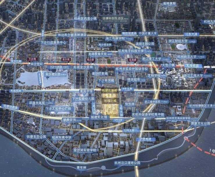杭曜之城与杭望云潮城所处地段极为优越,处于杭州三大核心商圈之一的金沙湖商圈范围内。