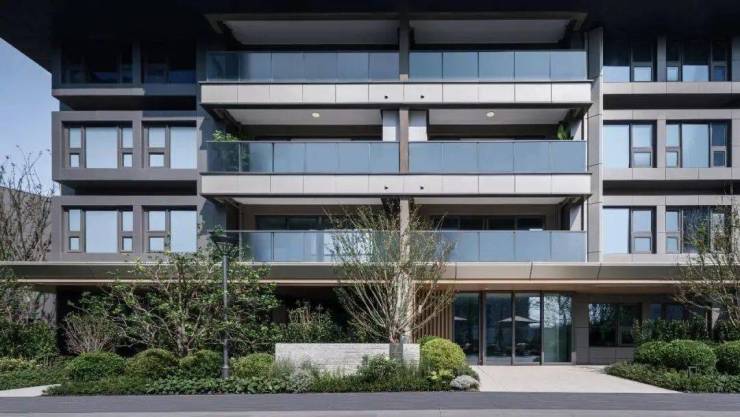 项目分A、B、C三个地块开发,总占地面积约10万㎡,建筑面积约22万㎡。A地块规划9栋5-6层精装洋房和毛坯叠墅,B地块规划7栋15-16层精装小高层,C地块为配套商业。建筑立面采用香槟金铝板一体板与巨幕玻璃组合,呈现国际化简约质感