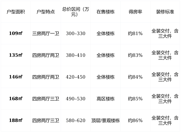 ✅ 温馨提示 :目前 135–168㎡主力户型 库存充足, 188㎡大平层 为稀缺景观房源,建议优先锁定南向、高区单元。