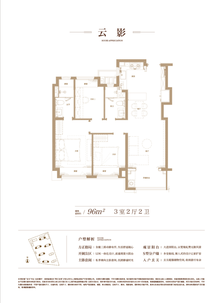 建面约96㎡三房两厅两卫