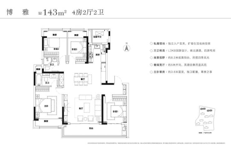 143㎡四居575615万 10/11栋 2梯2户 16层/2.95米此户型布局合理,四居室满足家庭多样化居住需求,2梯2户设计保证出行便捷,16层的高度与2.95米的层高,使居住空间宽敞明亮,通风采光俱佳。