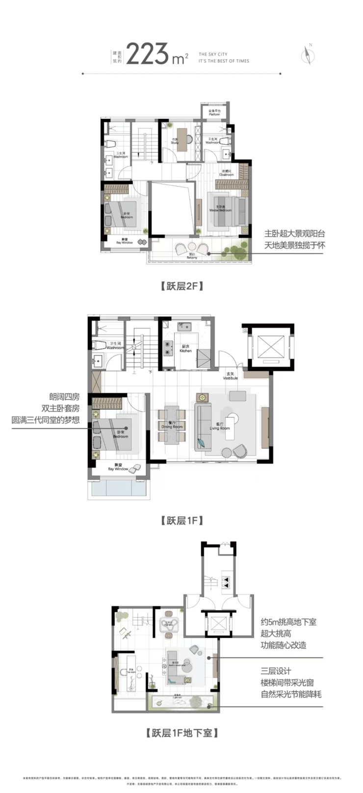 144㎡–223㎡ 16,800–18,500元/㎡ 322万–380万元 毛坯叠墅 独立院落+屋顶露台,为社区稀缺产品,总价高但稀缺性强