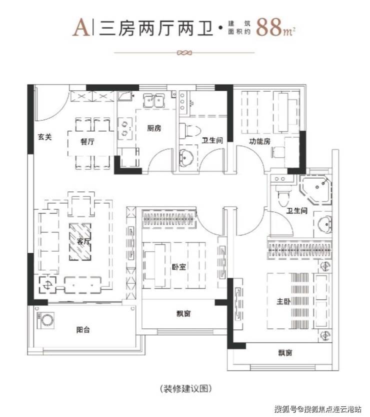 建筑面积:88平米(三房两厅两卫)
