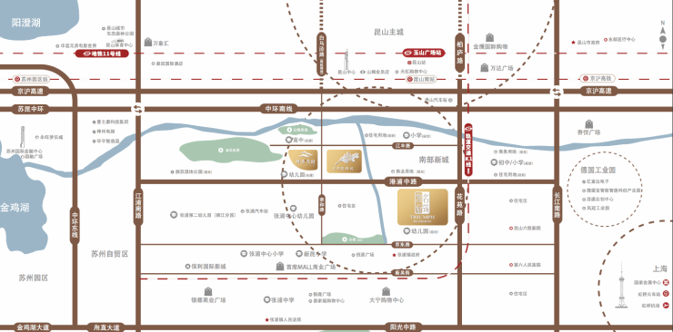 规划地铁K1线(苏州轨交11号线延伸线)途经项目东侧,未来可直达苏州主城区,融入长三角一小时经济圈(预计2027年通车)。