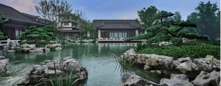 园林景观以江南水乡为蓝本,打造"宅园合一"的沉浸式体验