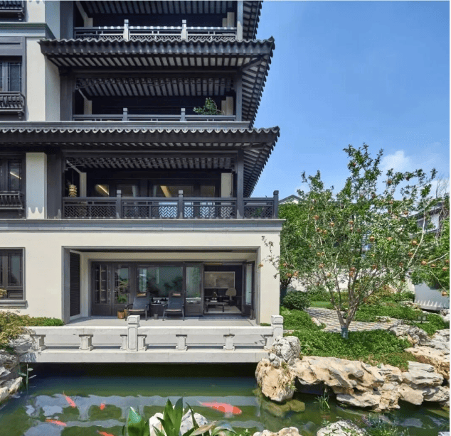 采用纯中式园林设计,融合五进礼序、四水归堂等传统元素