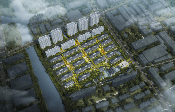 建筑风格上,多层为粉墙黛瓦的中式风格,小高层采用现代简约设计