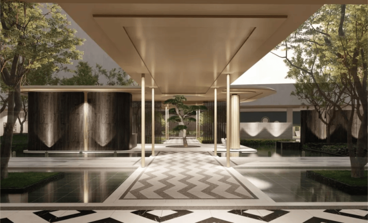 外立面灵感源自扎哈·哈迪德“凝固的波浪”,采用曲线铝板+全玻璃幕墙设计,轻盈现代,成为区域视觉焦点。室内空间延展性强,可个性化改造为LOFT、家庭影院、私人收藏室等,满足塔尖人群多元生活需求 。