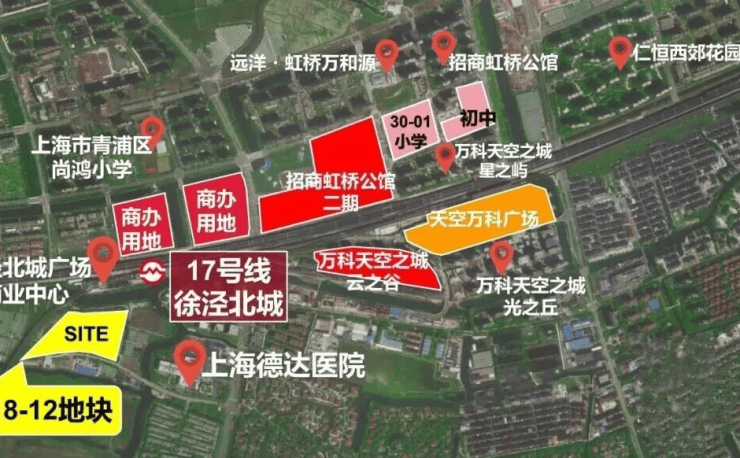 项目北侧紧邻17号线徐泾北城站(暂时需绕行河道),1站可达徐盈路天空万科广场,2站至蟠龙古镇商业区,3站直达国家会展中心,4站即达虹桥枢纽。