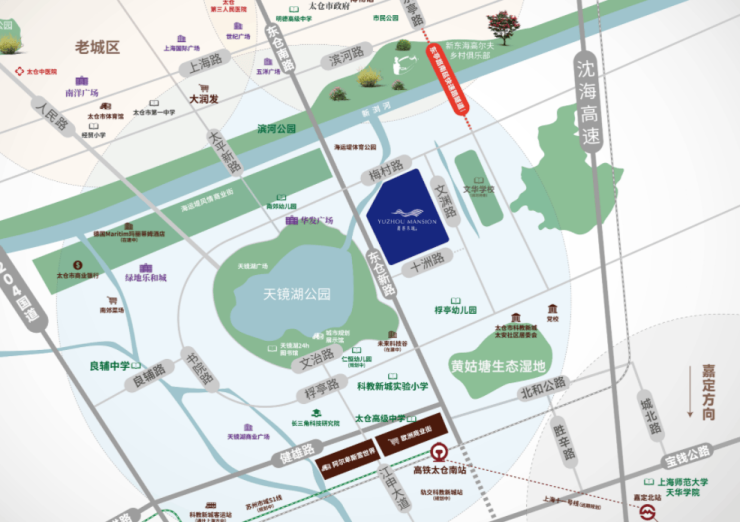 交通路网:依托“5+1"轨道交通网络,包括已通车的沪苏通铁路(太仓南站)、规划中的苏州 S1 线及嘉闵线延伸段,快速接驳上海虹桥与苏州市区,实现“沪太同城”高效通勤。