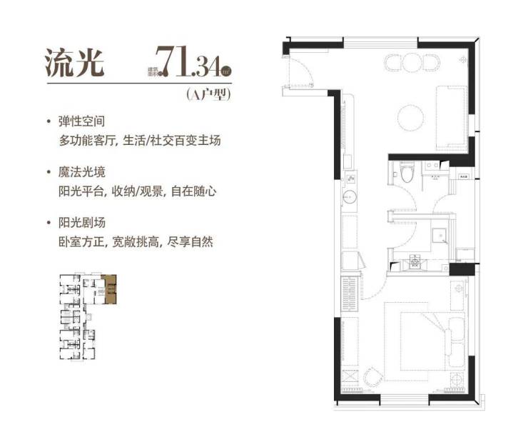 A|流光|建面约71.34m²|一室两厅一厨一卫