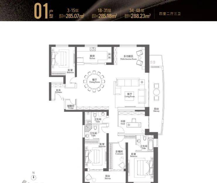 项目目前在售2#楼超高层房源,户型面积跨度从116.35㎡到331.18㎡,满足不同家庭结构的居住需求: