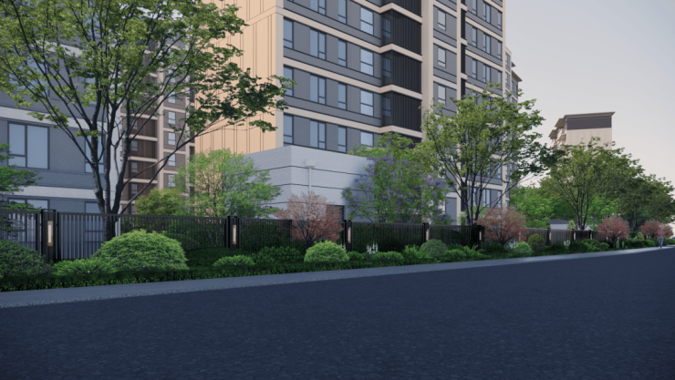 低密宜居:纯洋房及小高层社区,楼栋南向错落布局,最大楼间距约58米