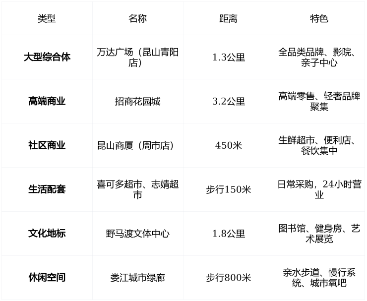 周边配套:1–3公里内,解锁昆山城芯生活圈